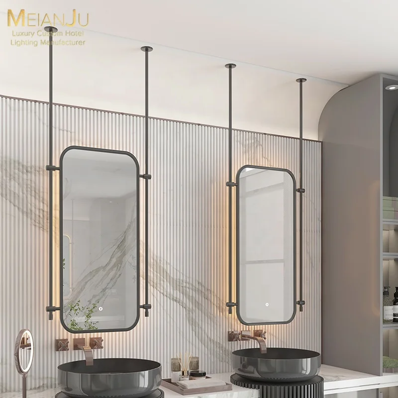 European Style Creative Square Bathroom Mirror Lighting Metal Floating Washroom Smart LED Wall Mirror Lamps IP65 Rated Light